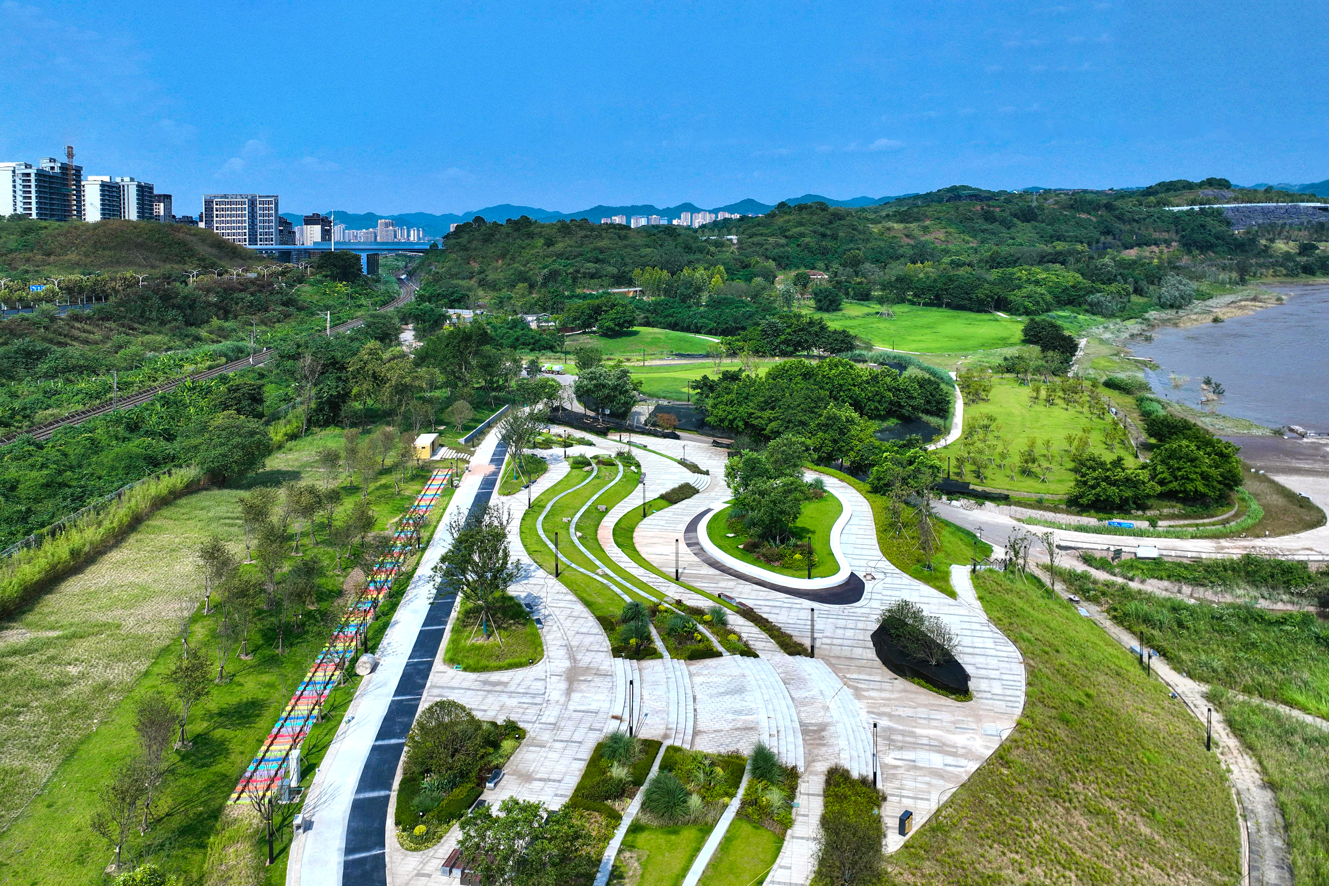 中冶建工承建的重慶“兩江四岸”治理提升長(zhǎng)江北岸線延伸工程釣魚(yú)嘴濱江段項(xiàng)目,是重慶市重點(diǎn)工程,也是“兩江四岸”治理提升重點(diǎn)項(xiàng)目,全長(zhǎng)約4.2公里,通過(guò)微改造,巧妙利用現(xiàn)有草海、森林、江灘等資源,彰顯原生態(tài)自然景觀,使生態(tài)美景連點(diǎn)成線,讓群眾享受更多開(kāi)窗見(jiàn)景、推門見(jiàn)綠的城市空間,成為全國(guó)各地增植補(bǔ)綠、打造生態(tài)宜居城市的典范。